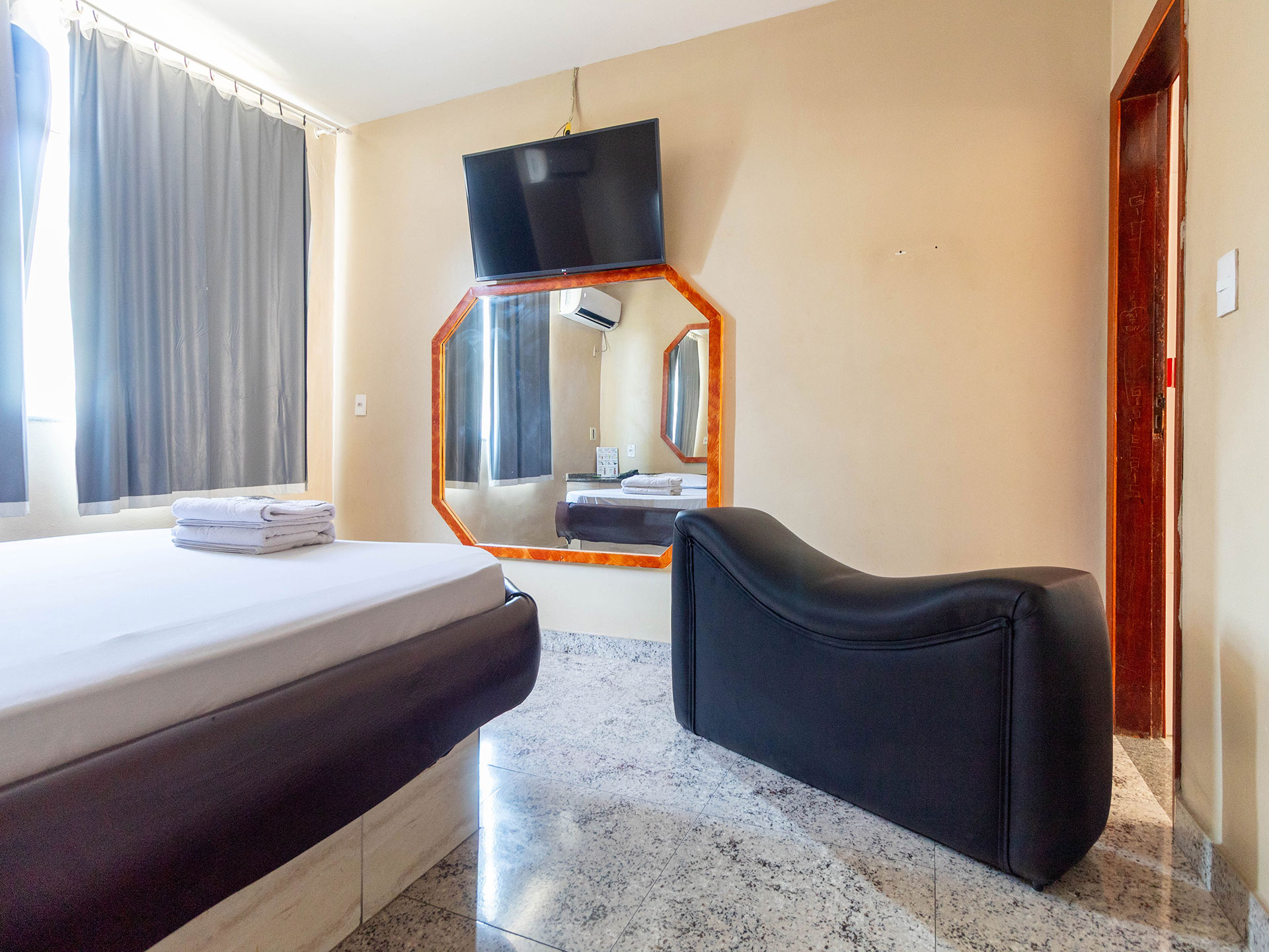 5 canais à cabo ar-condicionado ducha frigobar garagem Wi-fi som AM/FM TV Preços e Períodos: Todos os dias – 3h R$ 49,99 odos os dias – 4h R$ 59,99 odos os dias – 12h R$ 69,99 Pernoites: Pernoite a critério do Motel